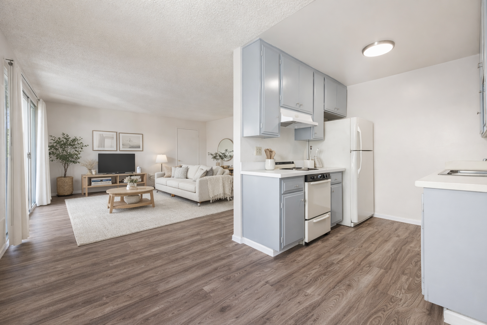 • Stylish vinyl plank flooring or cozy carpet (select units)